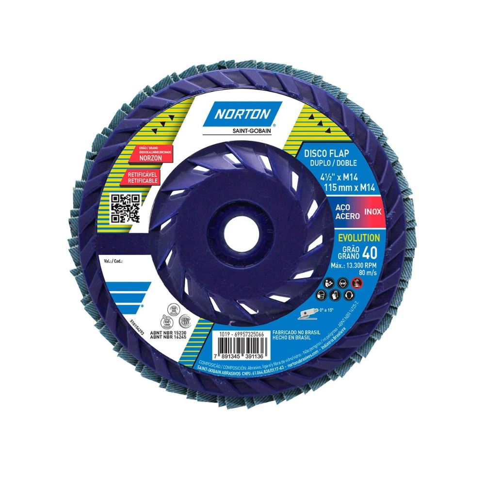 DISCO FLAP EVOLUTION R822 AÇO/INOX GRÃO 40 4.1/2"