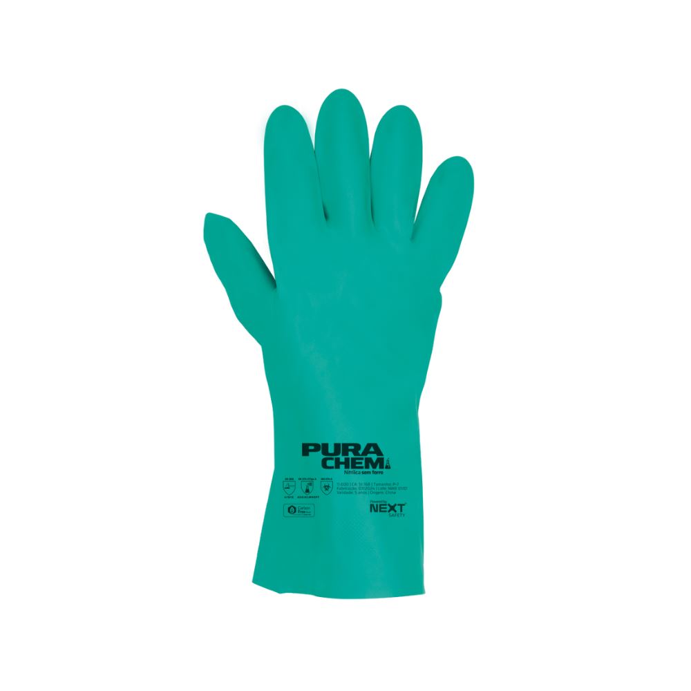 LUVA SEGURANÇA PURACHEM NITRILICA COM FORRO VERDE TAM.P/7 CA 51168