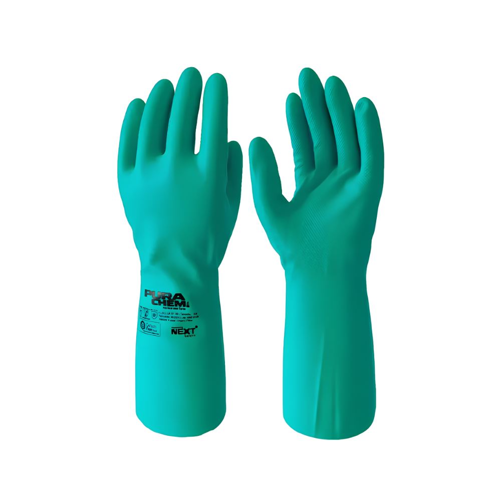 LUVA SEGURANÇA PURACHEM NITRILICA SEM FORRO LONGA VERDE 46CM TAM.M/8 CA 51128