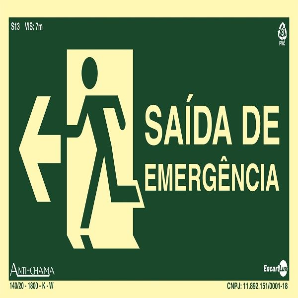 PLACA FOTOLUMINOSA ROTA DE FUGA SAÍDA ESQUERDA 25X15X00